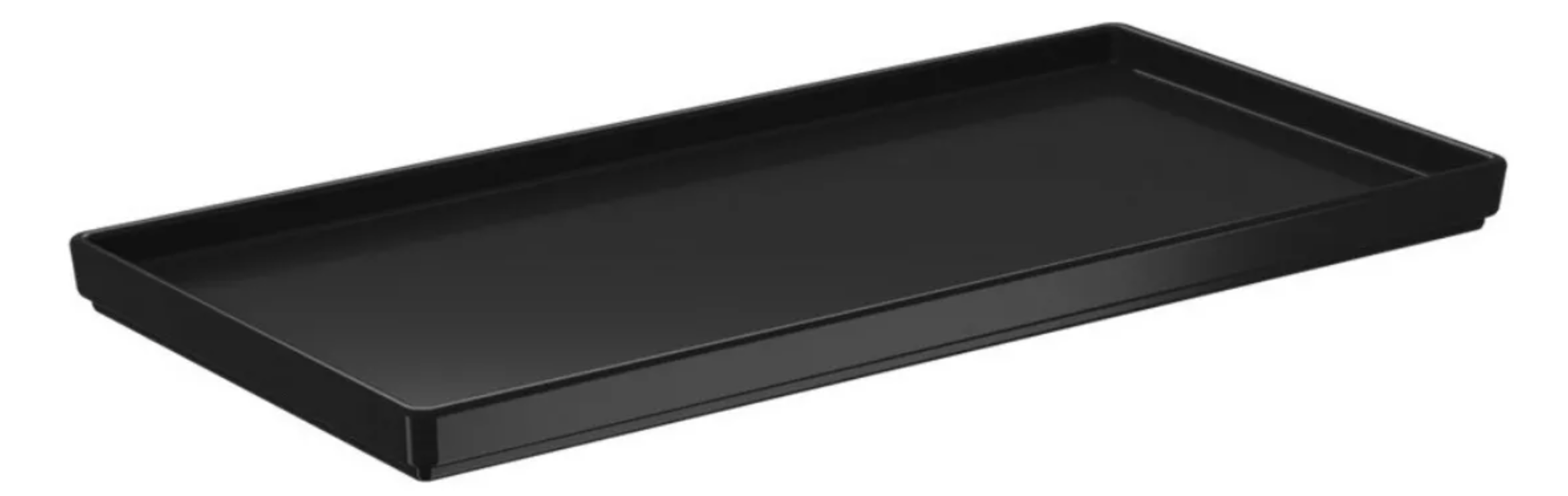 Feita em plástico resistente, retangular, na cor preta, ideal para servir petiscos e bebidas.