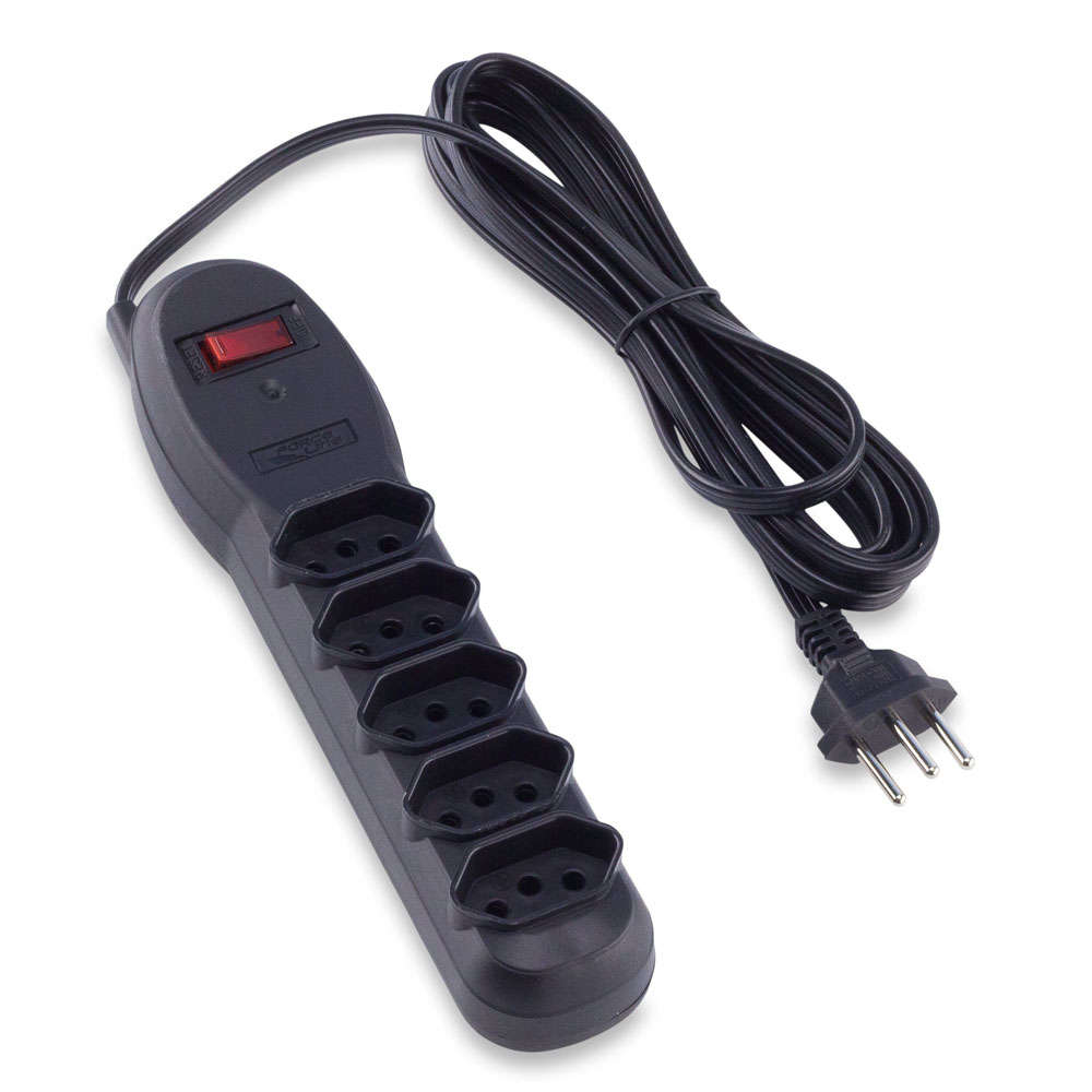 Filtro de linha com proteção se houver sobrecarga, picos de energia e ruídos da rede elétrica, tomada tipo NBR14136 Tripolar 5 Pinos 10A e botão tipo liga-desliga com led de funcionamento em vermelho com fusível podendo ligar mais de um aparelho em simultâneo com segurança.