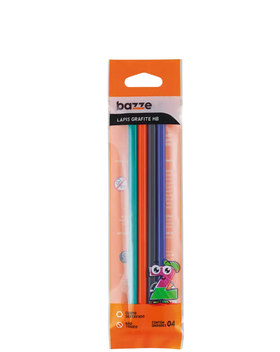 Lápis Grafite de resina não tóxica, com mina resistente e traço HB. Não tóxico.