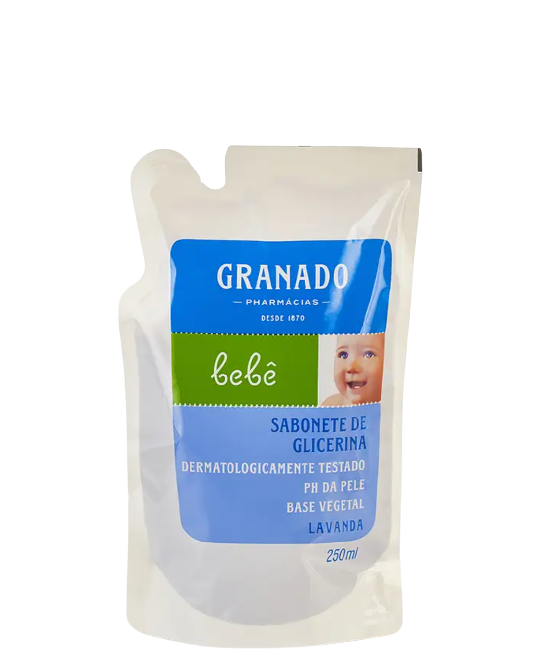 O Refil Sabonete Líquido Bebê Lavanda 250 ml é formulado com glicerina vegetal e pH equilibrado, limpa sem agredir, hipoalergênico, preservando a pele sensível dos pequenos.