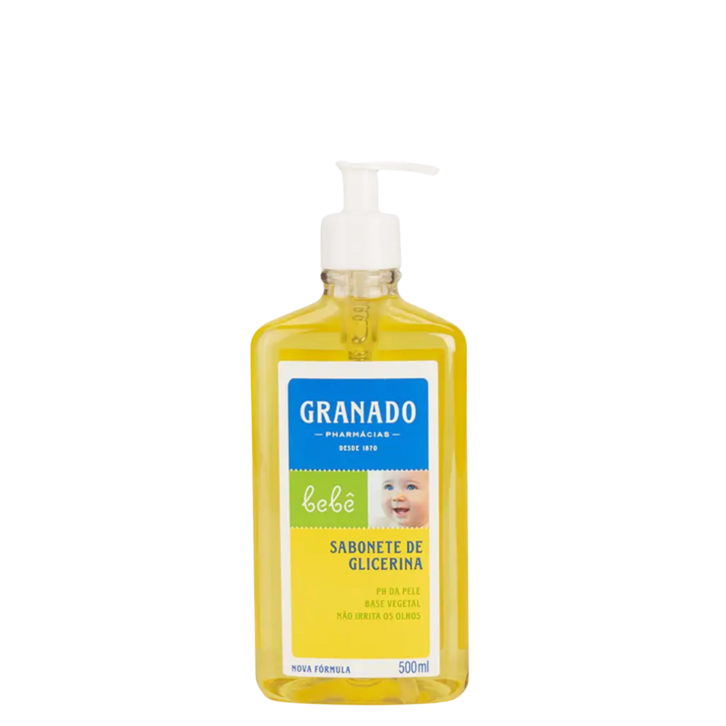 O Sabonete Líquido de Glicerina Granado Bebê Tradicional 500ml vem em embalagem econômica com válvula pump, garantindo praticidade no uso e maior rendimento, ideal para o cuidado diário da pele delicada do bebê.