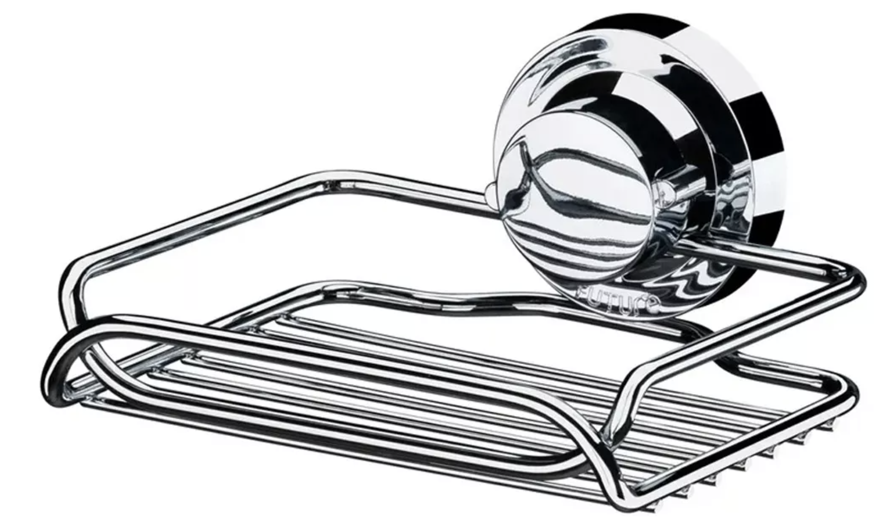 A Saboneteira com design sofisticado e acabamento brilhante. A instalação é rápida e sem sujeira com fixação das ventosas, possui revestimento com uma camada extra do protetivo especial Rust Free e maior resistência contra ferrugem.